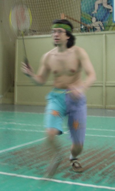 В этот день я обычно делаю серию фотопортретов, "для сравнения" и вообще. Но сегодня как-то не сложилось, и стрижка не та, и линзы забыл, и антуража подходящего нет (откуда ему взяться в Чернобыле). Но я взял фотоаппарат в спортзал, и из кучи отщёлканых коллегами кадров выбрал вот этот. Технически он безобразен, но что-то в нём мне понравилось: