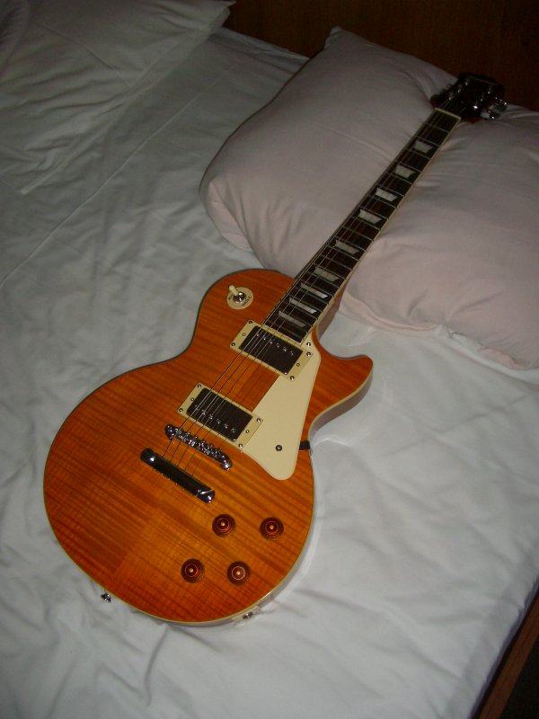 Jul. 13th, 2007 10:11 pmПолучив пару дней назад от жизни дюжий удар в мягкое, я решил срочно побаловать себя чем-нибудь эдаким. В результате сегодня, несмотря на дождь и пятницу 13-е, я познакомился и завёл серьёзные отношения с электрогитарой Epiphone Les Paul Standard по имени Lora: