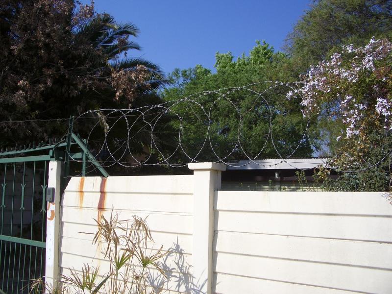 Но местные (да и часто ездящие сюда коллеги) в один голос говорят, что "тут практически безопасно!" (и начинаются оговорки: "конечно, если не ходить одному, не заходить куда не надо, не светить фотоаппаратом / ценностями / деньгами и т.п."). Не знаю, у моего инструктора я насчитал в карманах 3 складных ножа класса Spyderco Military или чуть крупнее; он член IDPA (так что и пистолет как минимум тоже есть). Ну а ограждения, электрическая проволока и спирали Бруно на заборах, висящие повсюду наклейки "Armed response" говорят сами за себя.